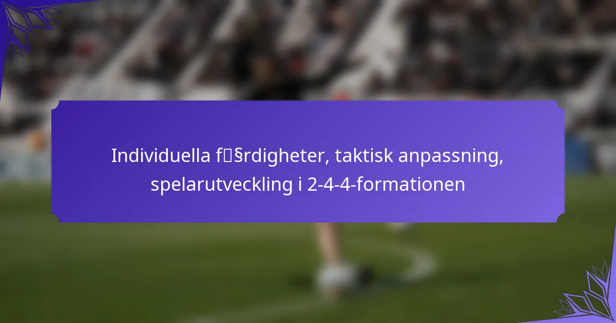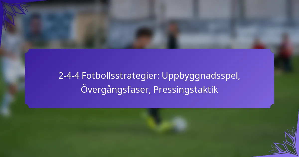 2-4-4-formationen är en dynamisk fotbollsuppställning som prioriterar offensiva strategier med två försvarare, fyra mittfältare och fyra anfallare. Den bygger på överlappande löpningar och positionsrotationer för att skapa målchanser samtidigt som den säkerställer adekvat stöd i… 2-4-4 Formation: Överlappande löpningar, Positionsrotationer, Stödspel