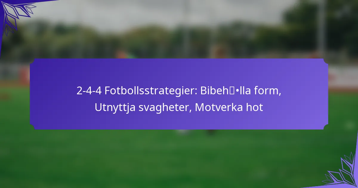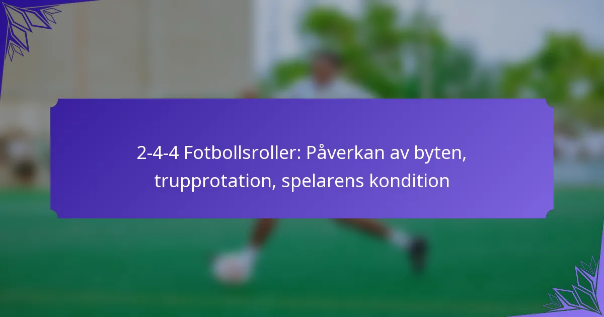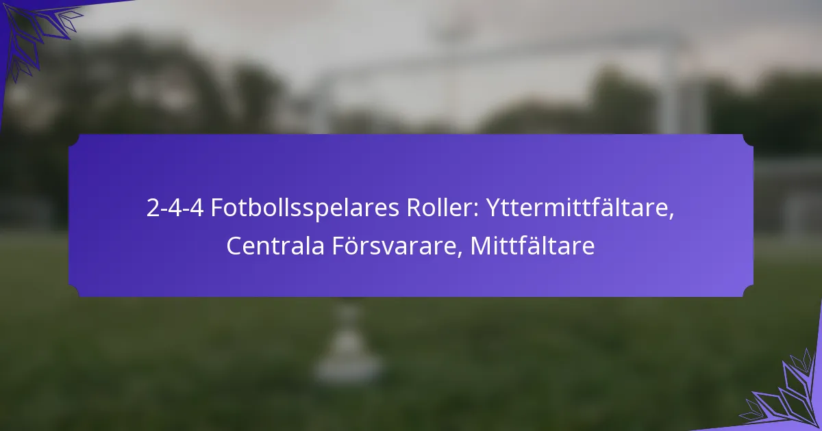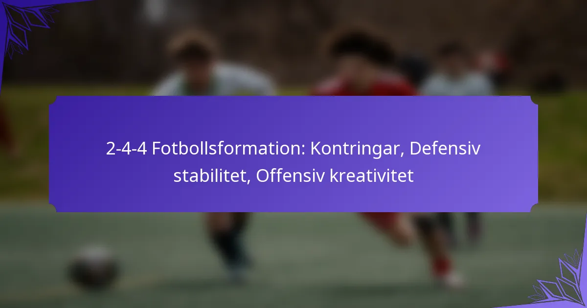 2-4-4 fotbollsformationen är en dynamisk taktisk uppställning som kombinerar två försvarare, fyra mittfältare och fyra anfallare, med fokus på offensiv kreativitet samtidigt som defensiv stabilitet säkerställs. Denna formation möjliggör snabba kontringar, vilket gör det möjligt… 2-4-4 Fotbollsformation: Kontringar, Defensiv stabilitet, Offensiv kreativitet